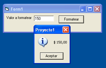 Este simple ejemplo muestra como formatear un número de tipo decimal a un formato de tipo moneda.