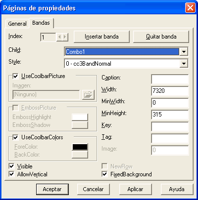 Esta barra "Cool" permite, contener otros controles en su interior, como por ejemplo un ComboBox, un Frame, un Label un ToolBar etc..., separados por bandas o Bands
