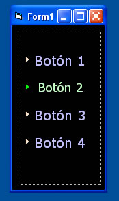 Este senciilo ejemplo muestra una forma de poder crear un botón utilizando dos controles label en un array de controles uno encima del otro. Y en el evento MouseDown , se oculta uno, y se visualiza el que está por debajo, y luego se vuelve a visualizar el otro en el evento mouseUp