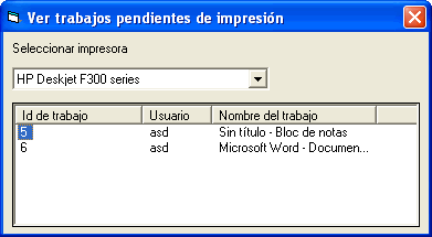 Nota: A la función EnumerarTrabajos, que es la que lista los trabajos pendientes en el LV, se le debe pasar como parámetro el nombre de la impresora