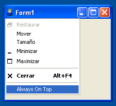 Una ves hecho esto, en el procedimiento que chequea los mensajes, hay un mensaje llamado WM_SYSCOMMAND. Dentro de este mensaje se coloca el código a realizar cuando se haga un clic en dicho menú. En este caso, se usa la función SetWindowPos para poder poner o quitar la ventana siempre visible por el resto de las demás ventanas en windows