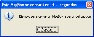Este módulo lo envió Juan Paz, y el ejemplo muestra como desplegar un cuadro de mensaje o msgbox durante unos segundos y luego poder cerrarlo en forma automática