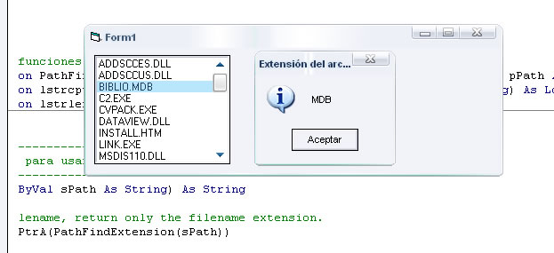 Este es un simple ejemplo extraido del sitio web vbnet - mvps , que muestra como podemos en visual basic recuperar o extraer la extensión desde un archivo utilizando la función de windows PathFindExtension