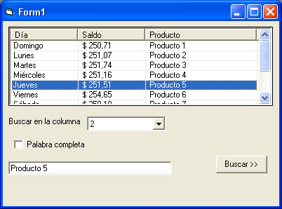 El formulario tiene un combo donde se debe indicar el número de la columna en donde buscar , es decir el índice del ColumnHeader .