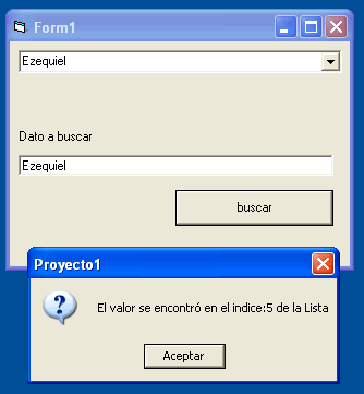 En el ejemplo, la búsqueda no distingue de mayúsculas o minúsculas, es decir si el combo tiene un elemento "PEDRO" es lo mismo que "Pedro", y la función Api SendMessage retorna el varlor del indice del combobox si es que existe, es decir se encontró la cadena