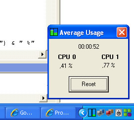 Este es un código fuente publicado en el sitio web Visual basic Forums , que muestra como recuperar el uso de CPU y visualizar el valor en el systray. Al hacer clic despliega un formulario para visualizar el porcentaje de uso, y funciona también para sistemas dual core.