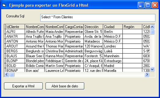 Este ejemplo muestra una forma simple de exportar el contenido de un control Microsoft Hierarchical Flexgrid a un archivo html.