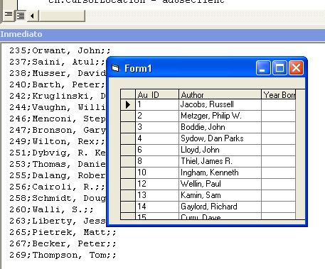 Código fuente ( Agregar al Form un DataGrid, un botón y la referencia de ADO )