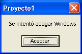Si se intenta apagar el sistema o cerrar la sesión, dentro del procedimiento WinProc, se muestra un mesanje MsgBox
