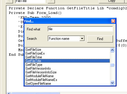 Otra función, que se puede utilizar para reemplazar este ejemplo, es mediante la Api GetFileTitle