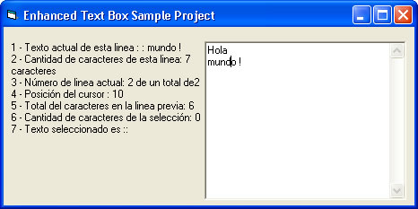 Este código fuente es mas completo que el anterior, y también utiliza la función SendMessage para obtener información sobre un control textbox, en este caso la información es la siguiente :