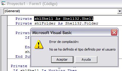 Hay que añadir una referencia a: Microsoft Shell Controls And Automation