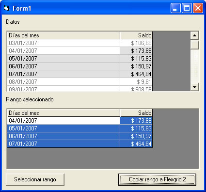Nota . Así como está el ejemplo, solo se copia el rango de datos, si en el primer Flexgrid hay mas de una columna seleccionada