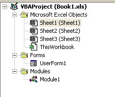 Por último, desde el editor de vba, hacer doble clic en la hoja1 para abrir el módulo: