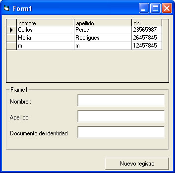 nuevos registros a una base de datos