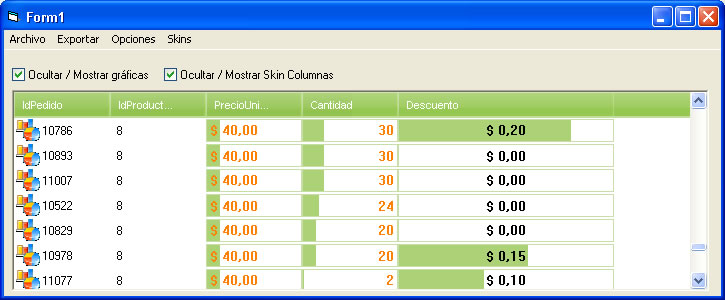 Proyecto actualizado con algunos cambios: ahora el ejemplo permite además de mostrar las gráficas, aplicarle skins a las columnas también con un ejemplo realizado por Leandro Ascierto