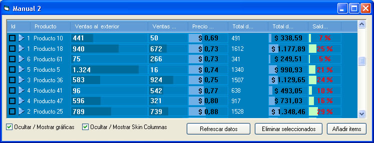 A la función "Configurar", se le debe enviar como parámetros los mismos valores que en el caso anterior, es decir el valor máximo para tomar como referencia, el índice de la columna que se va a utilizar, si se muestra o no el caption del subItem y los colores para la gráfica y el color del texto del SubItem