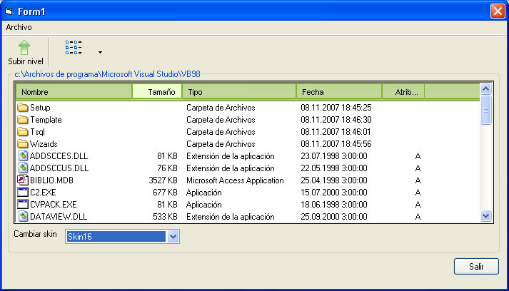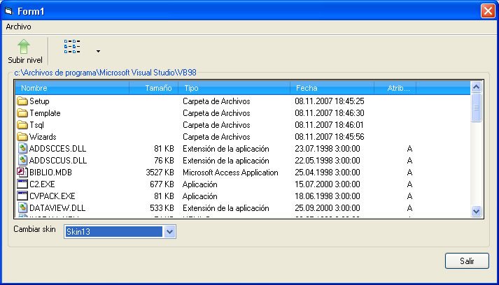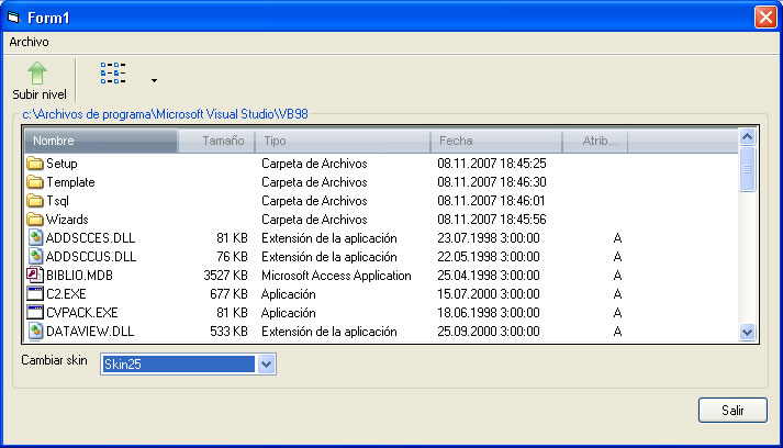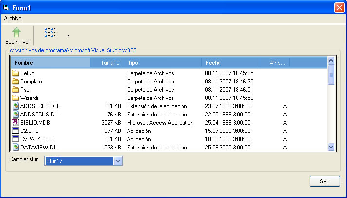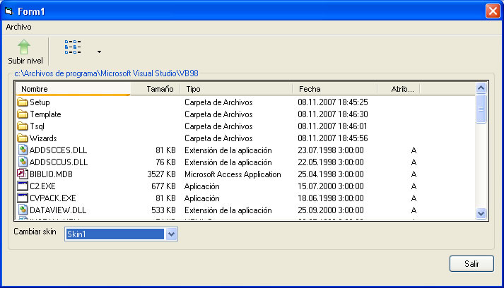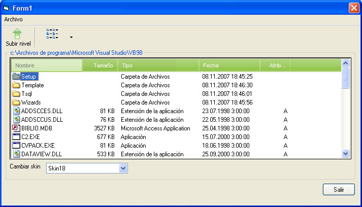 Este código fuente usa un módulo creado por Leandro Ascierto para aplicar Skin a las columnas de un control Listview. También utiliza otro módulo para cargar los archivos y carpetas en el Listview.