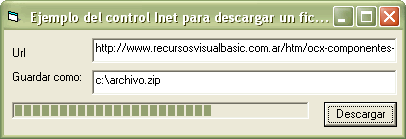 Este ejemplo utiliza el Control Inet ( Microsoft Transfer control ) para descargar un archivo de una url y permite visualizar el progreso de la descarga