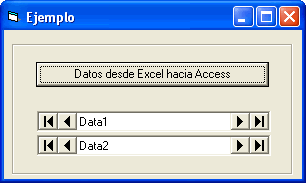 Uno de los controles Data, se enlaza con la hoja de Excel, y otro control data para acceder a la base de datos.