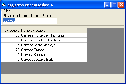 Nota : En este caso se utiliza los campos idProducto y NombreProducto, de la base de datos nwind del directorio de visual basic.
