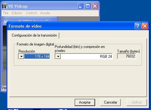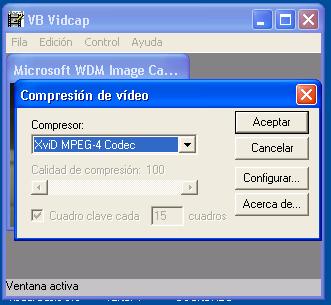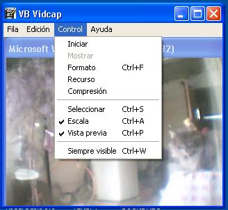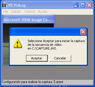Aquí una captura del dialogo de iniciar captura (propia del Avicap32.dll), cuando ya tienes listo la captura, la detienes pulsando esc (escape).