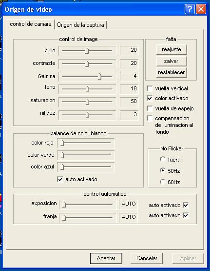 Recurso: este permite controlar la configuración de la web cam, con sus varias opciones