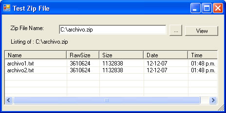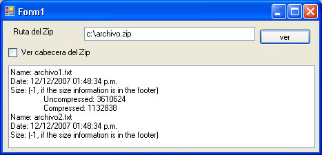 formulario para ver el contenido de un zip : archivos, directorios y otros datos como la cabecera del fichero