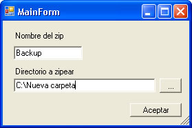 Formulario para crear un Zip a partir del contenido de un directorio :